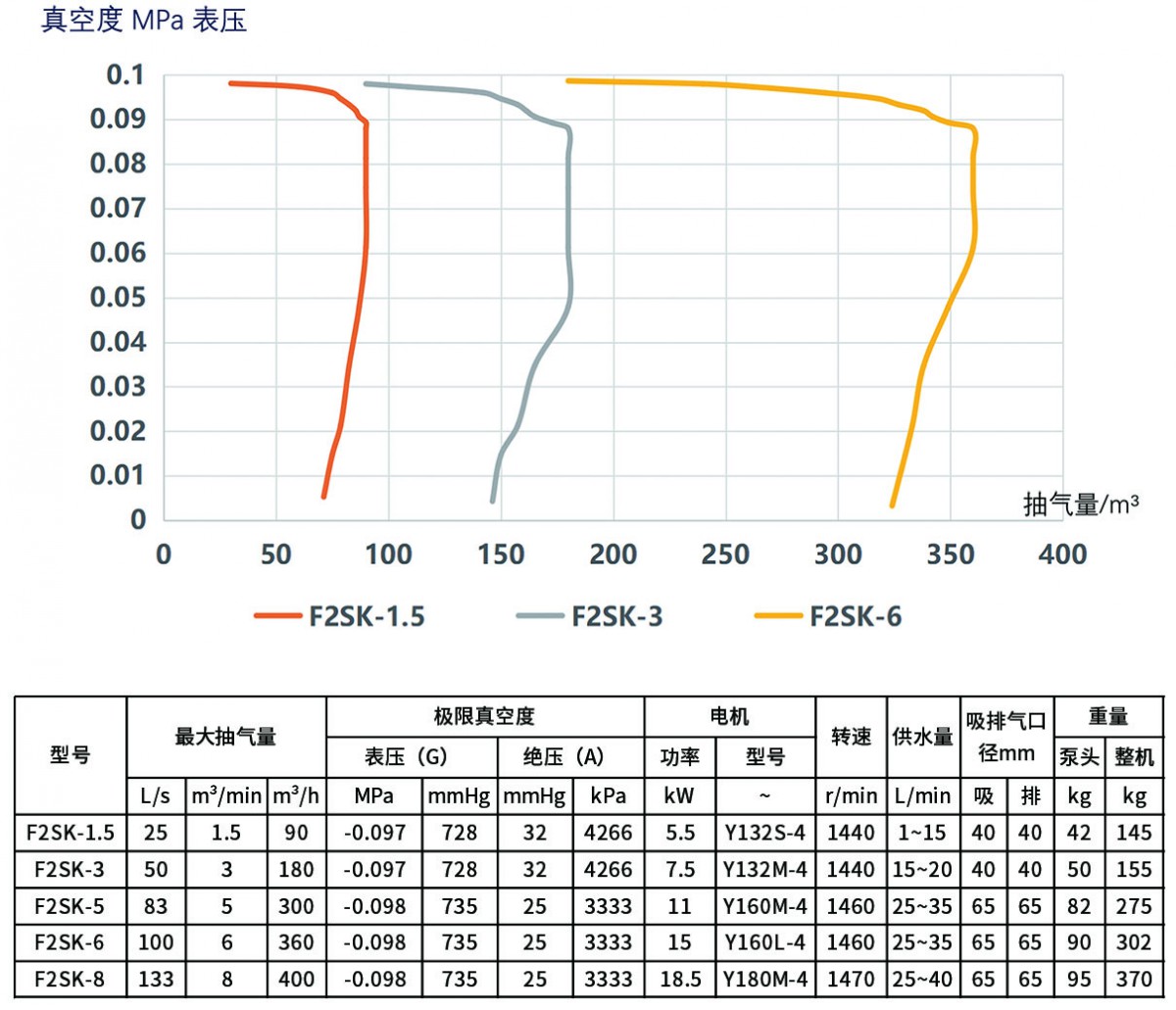 F2SK係列與FSK係列設計類似,同樣采用了徑向葉輪,它特點是增加了一個副葉輪,可以將真空度由-0.093提升到-0.098MPa。
